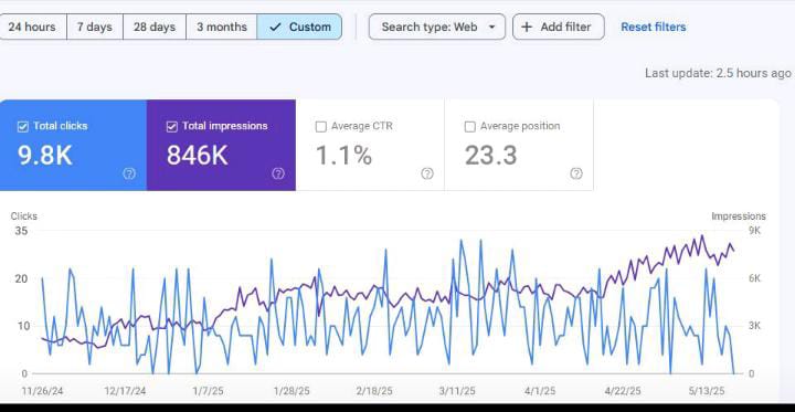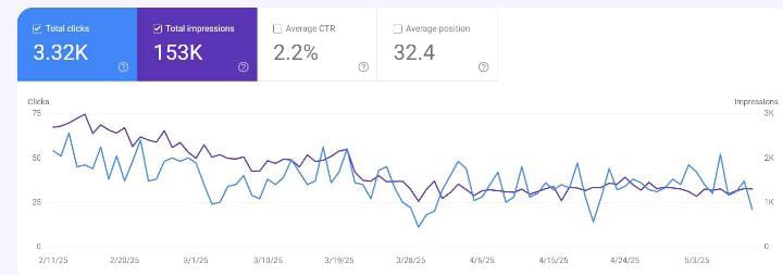 We initiated a deep SEO strategy, keyword research, content optimization, technical audits, and link structuring. Our focus was to increase both impressions and CTR while steadily improving average position.