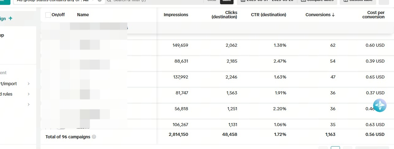 - Cost per Conversion Range: $0.37 – $0.65
