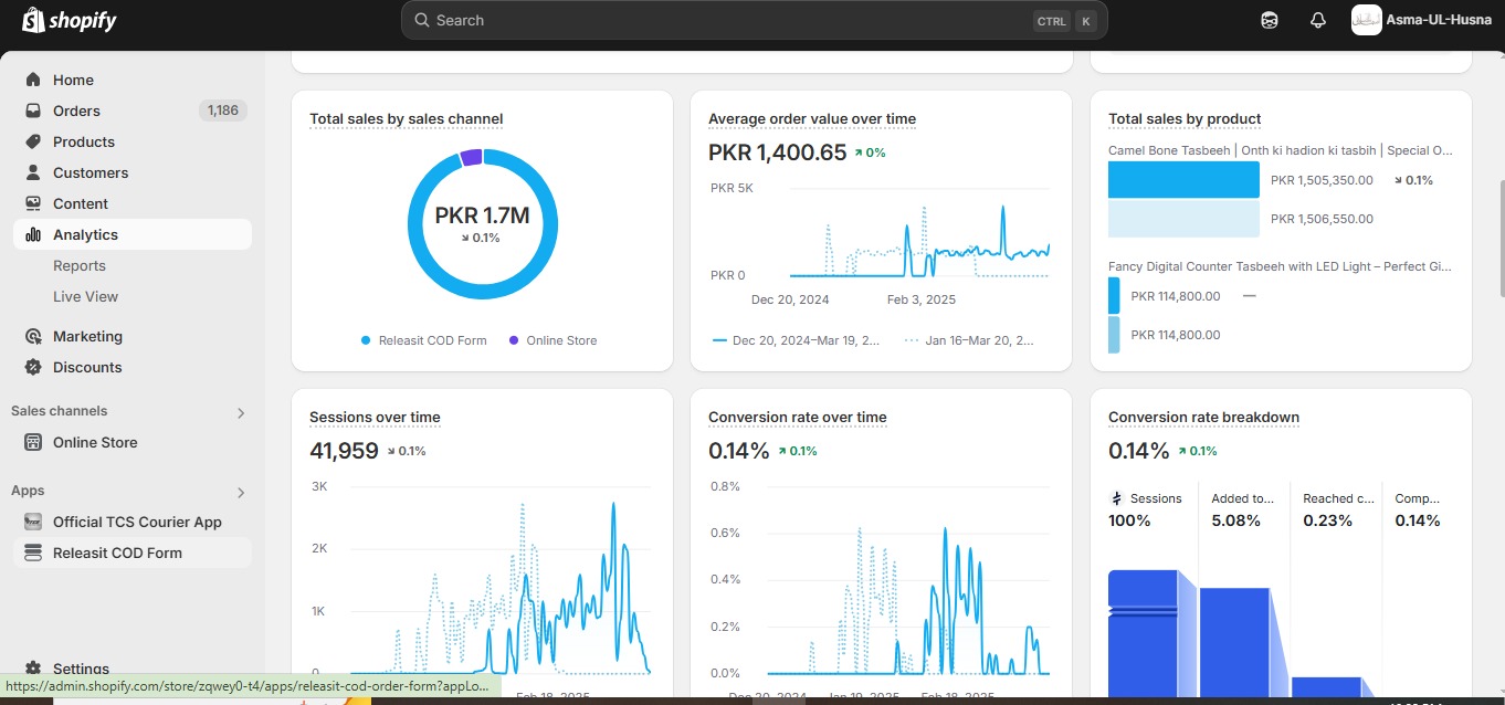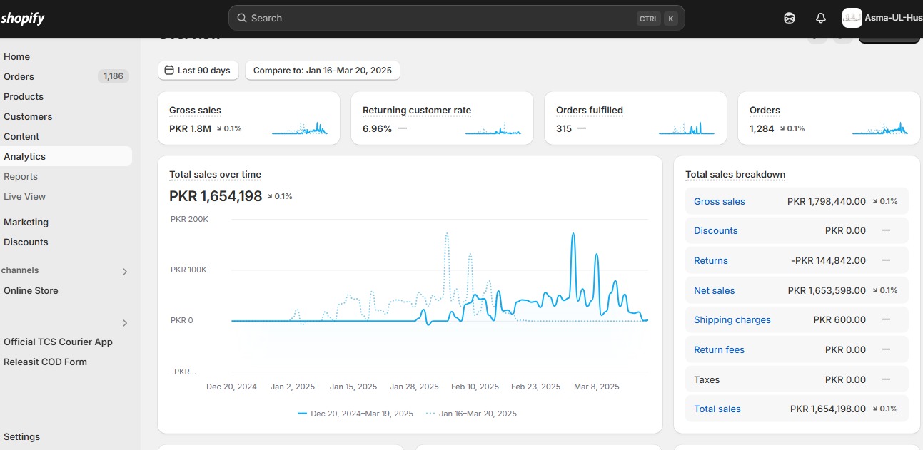 - Total Sales: PKR 1,654,198 in 90 days