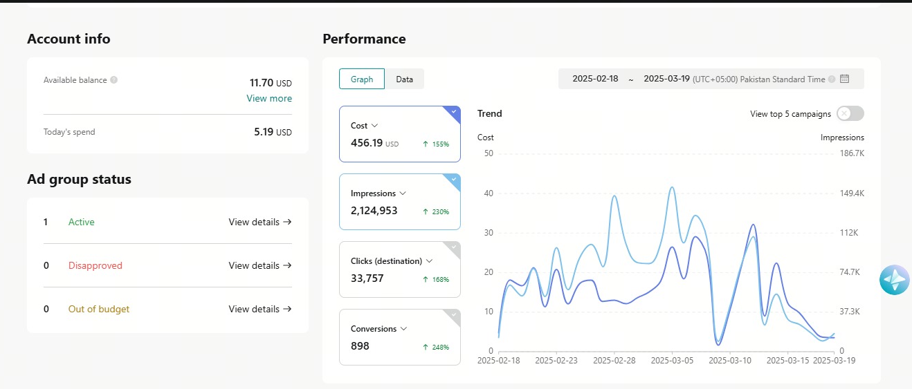 Campaign 5 – 2.1M+ Impressions & 33K+ Clicks with Just $456 Spend